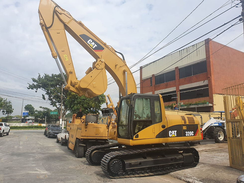 Máquina para escavações em geral. Indicada para remoção de entulho em locais de difícil acesso ou para realização de valetas na obra.